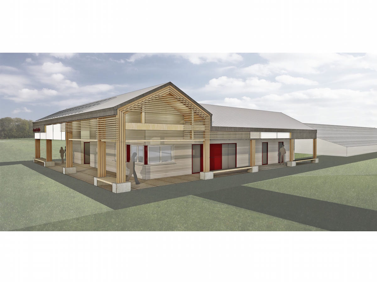 This is an athletic fieldhouse that features a concession stand, restrooms and storage for equipment.