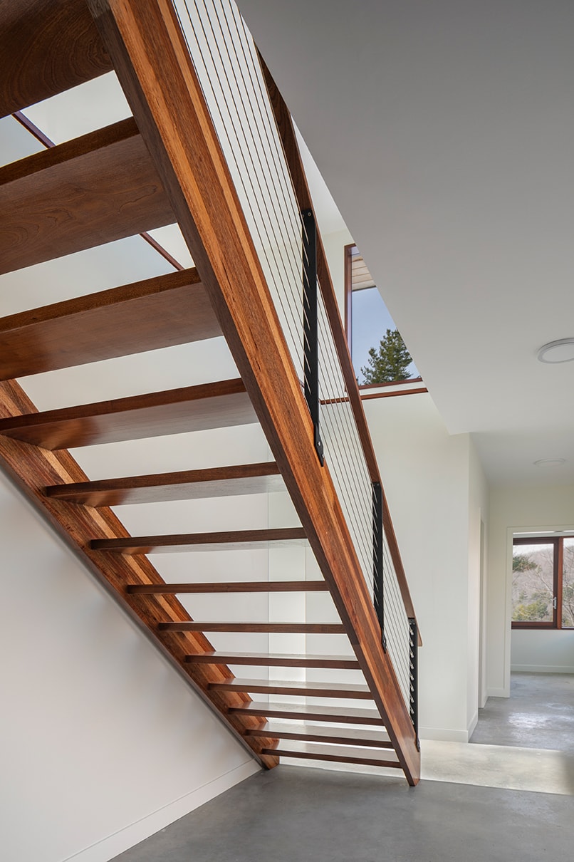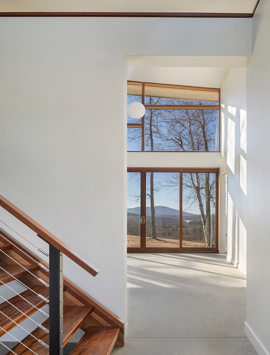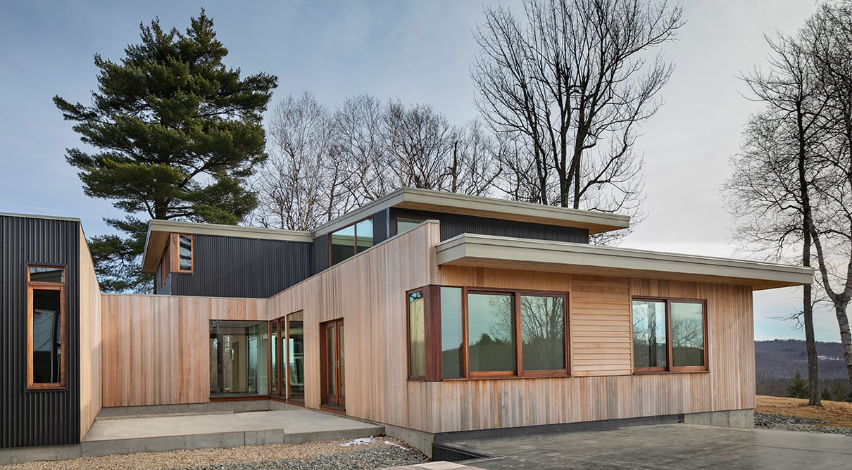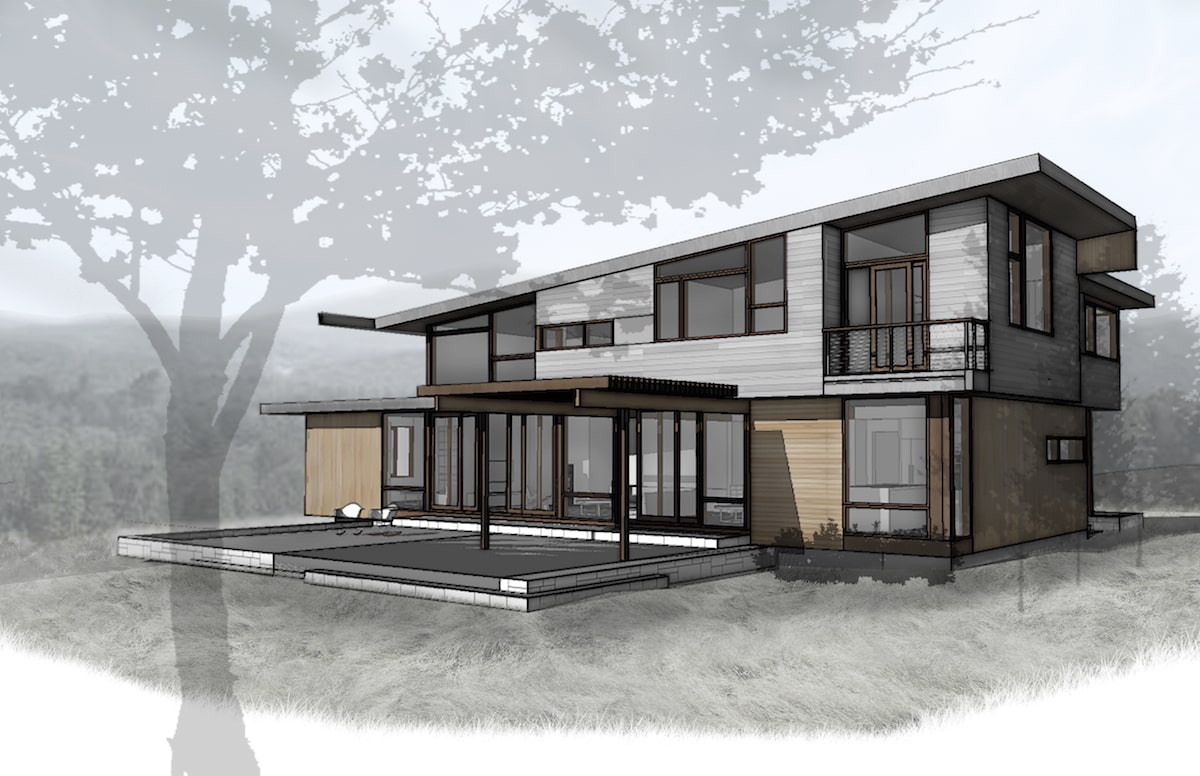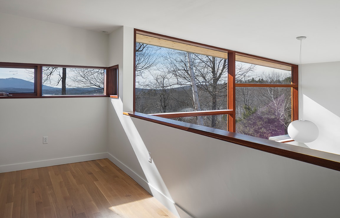 Monadnock Retreat is a striking NextHouse nestled amongst the mountains of New Hampshire. It features an expansive open floor plan and floor-to-ceiling walls of glass to capture the views. This home has three bedrooms and two-and-a-half baths, including a master bath with an open-air shower and balcony.