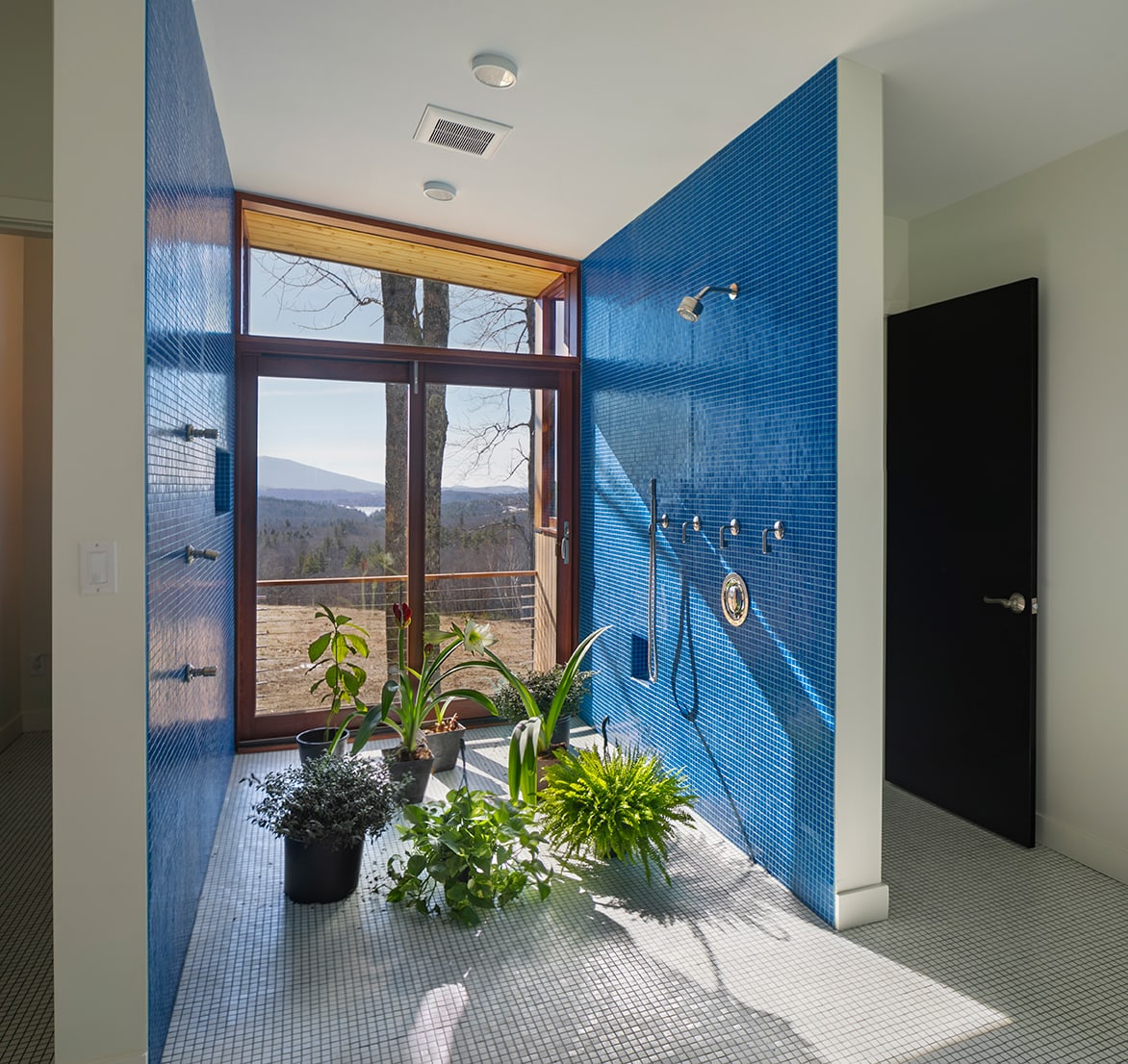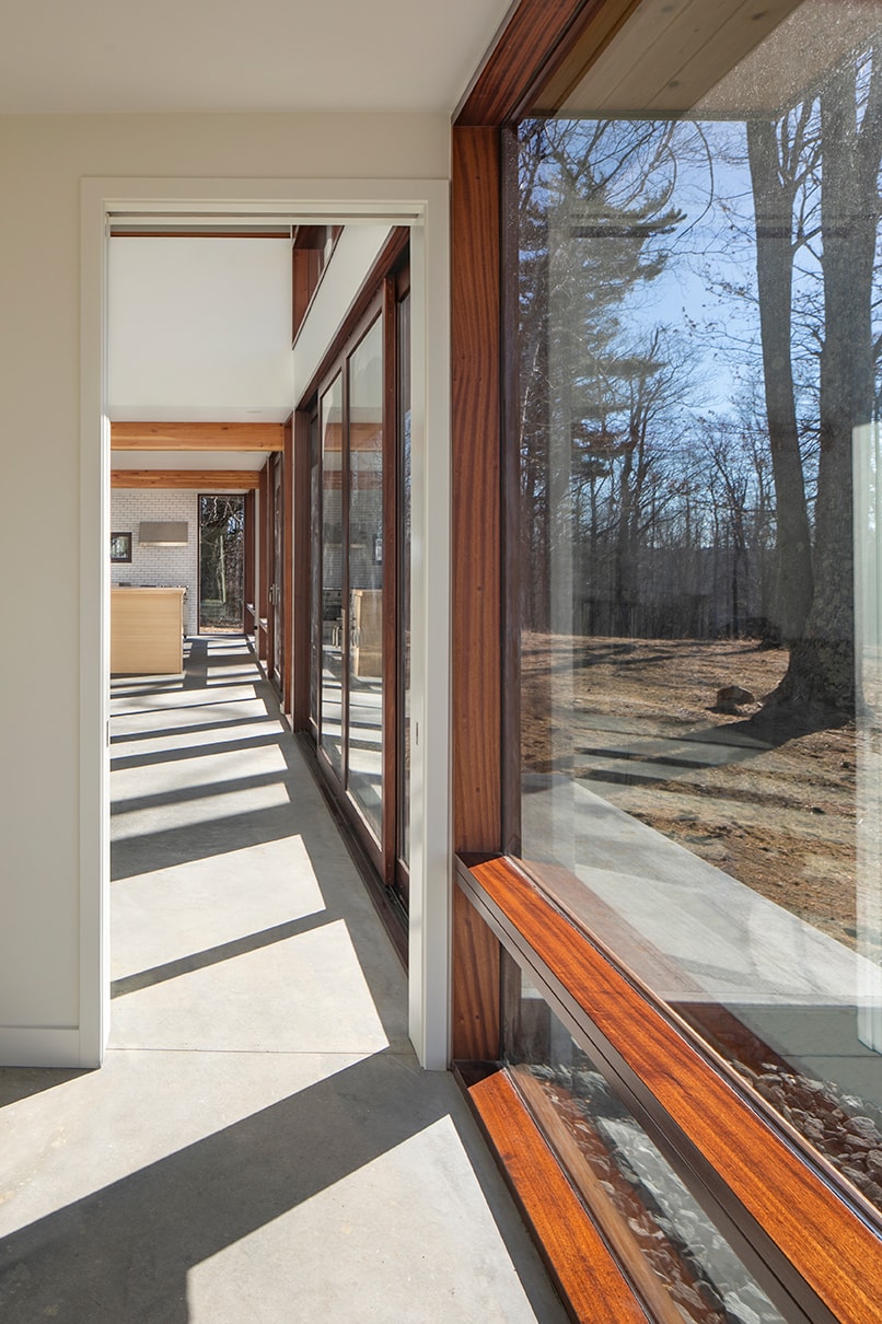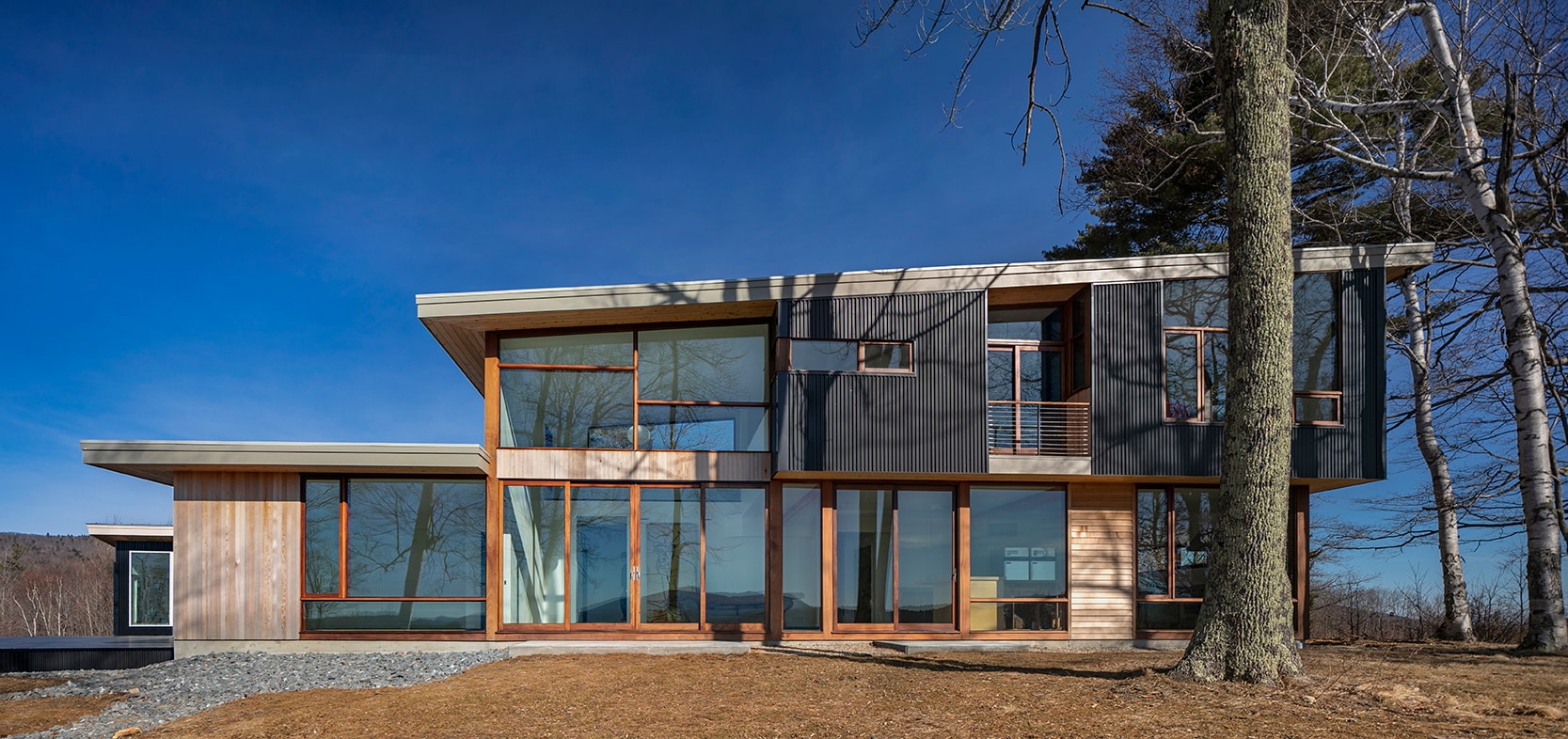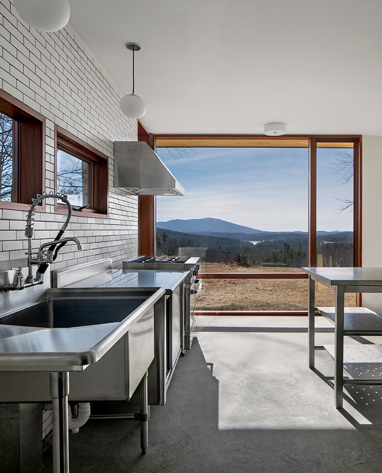 Monadnock Retreat is a striking NextHouse nestled amongst the mountains of New Hampshire. It features an expansive open floor plan and floor-to-ceiling walls of glass to capture the views. This home has three bedrooms and two-and-a-half baths, including a master bath with an open-air shower and balcony.