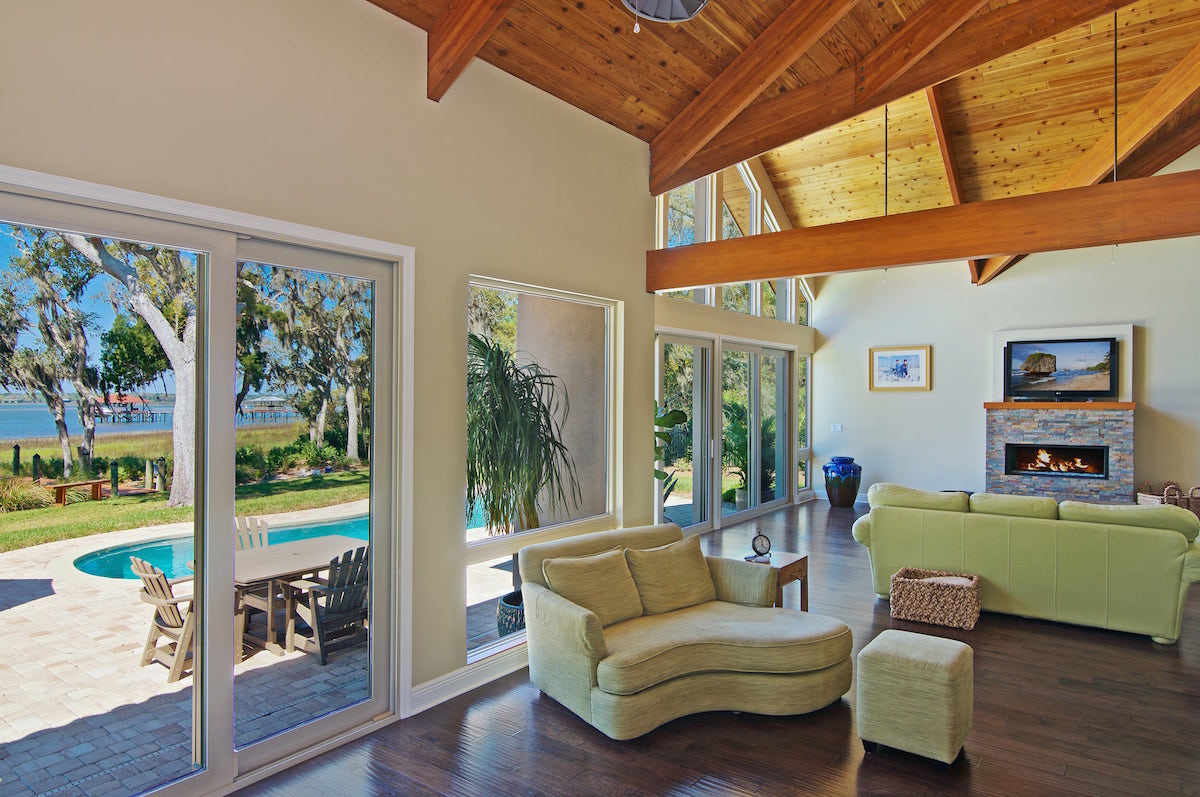 This Oceanside Deck House is a stunning home set on a picturesque site on the coast of Florida. An abundance of windows welcome in the natural light and frame the spectacular views. Cedar ceilings throughout are a Deck House signature that contrast beautifully with the ocean blues. This home features a 4-car garage, first floor master suite, in-law apartment and more.