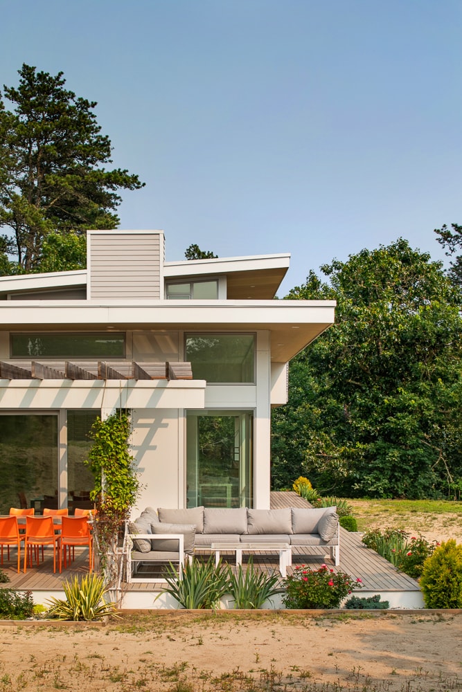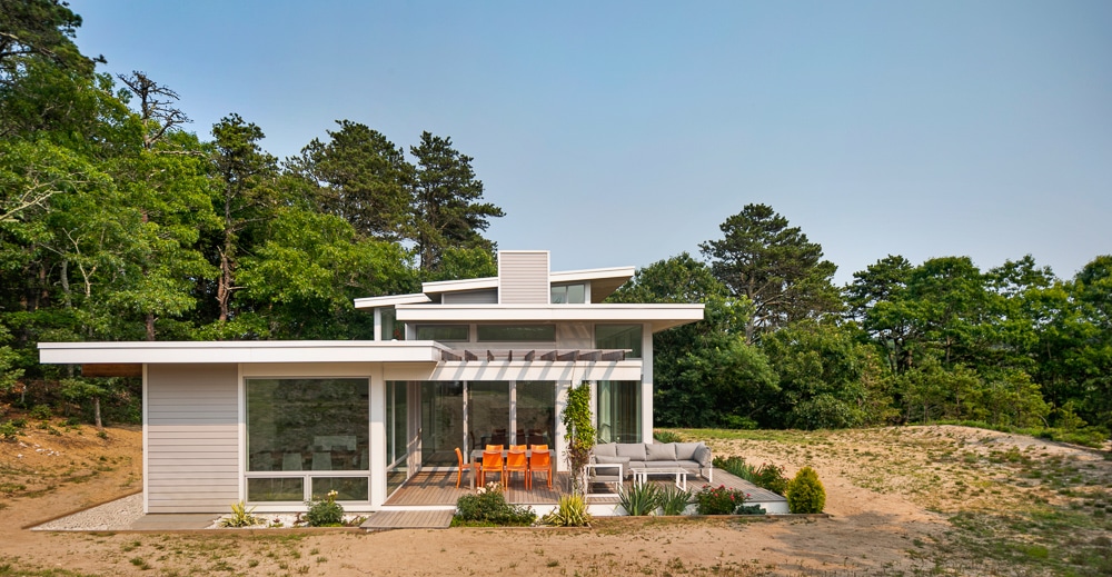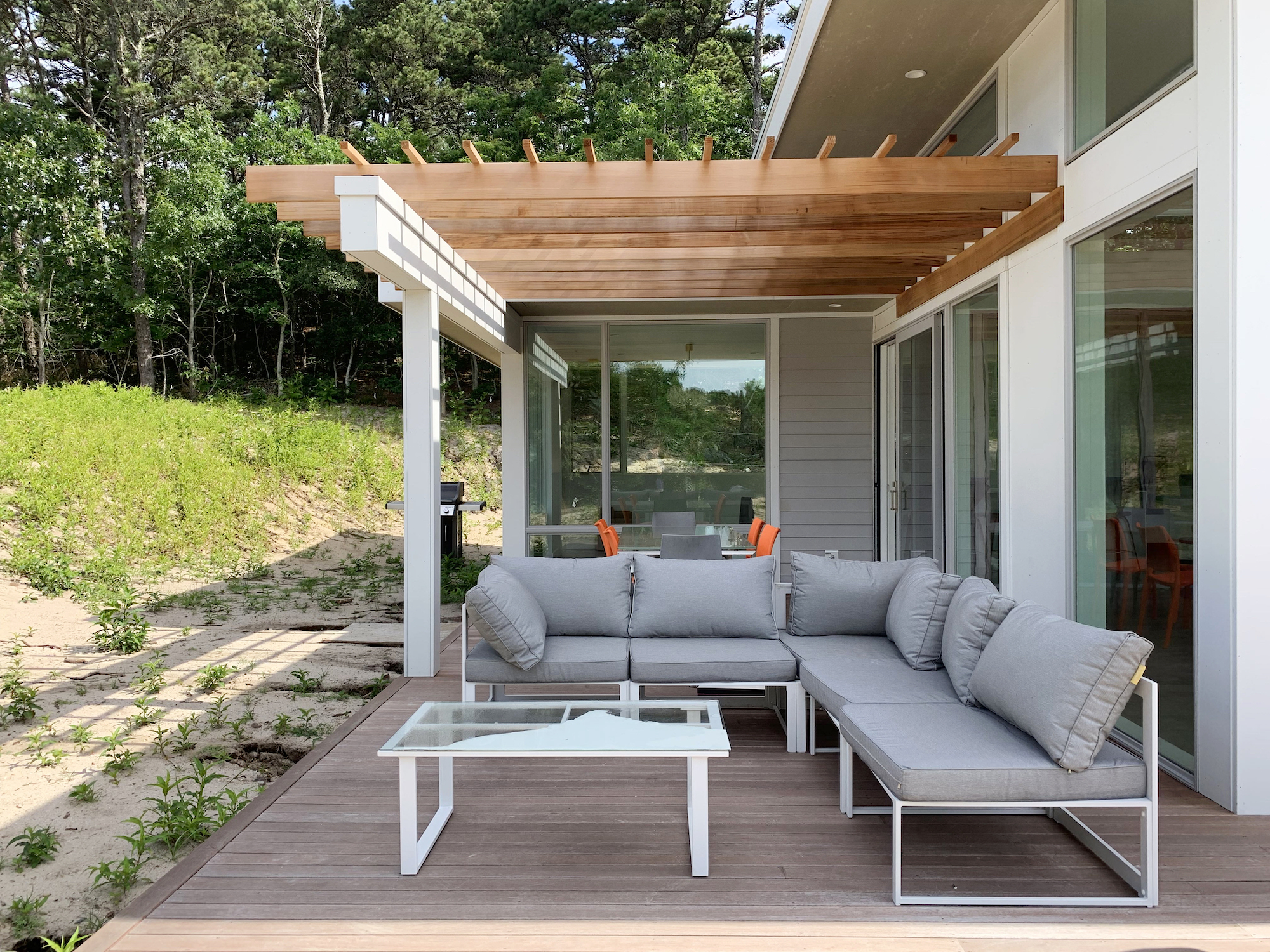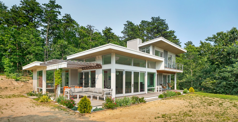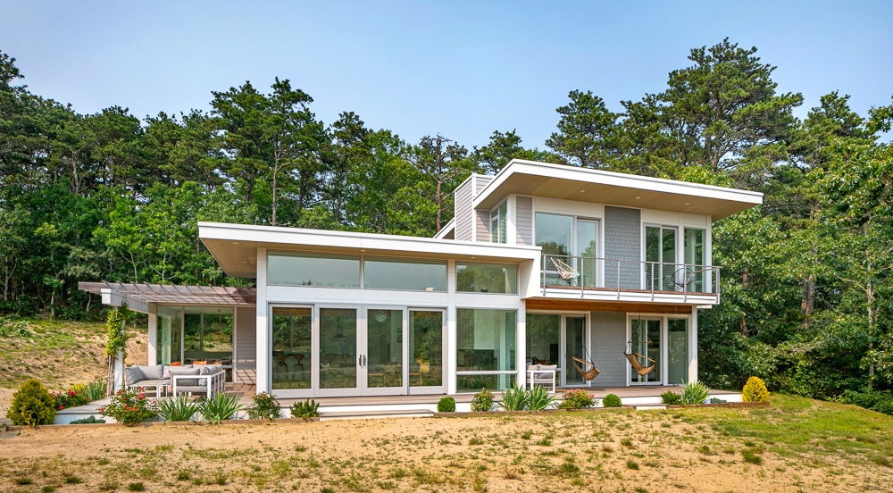 Nestled amongst the sandy dunes of Cape Cod, Seaside Modern is a custom home that proudly showcases a modern beach house style. This new construction home draws inspiration from the classic architectural characteristics of the area, but with a contemporary house design, creating a custom built home that seamlessly blends the beauty of New England house styles with the function and efficiency of modern house design. Read more in our introductory blog here.