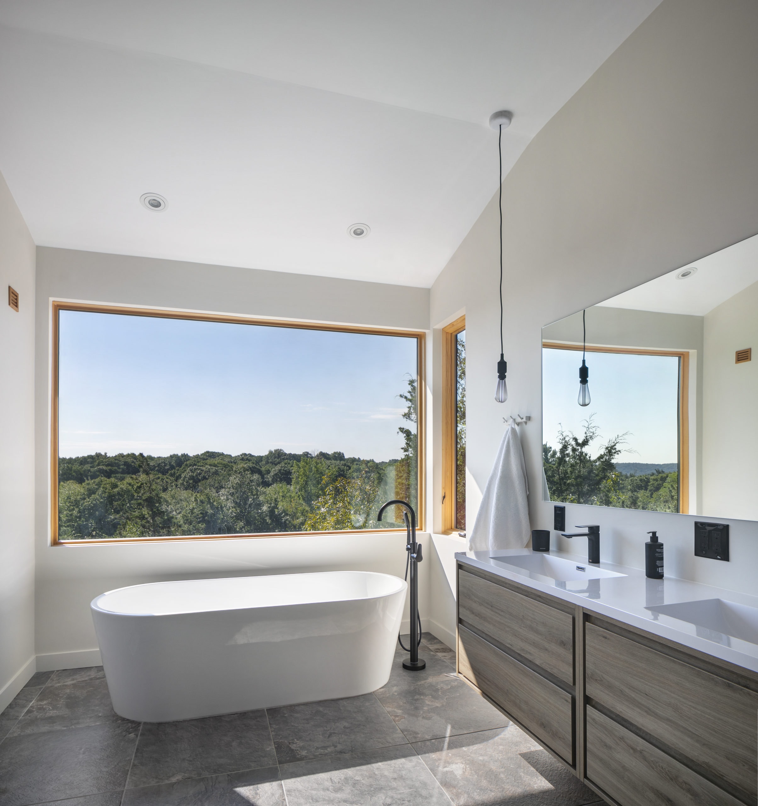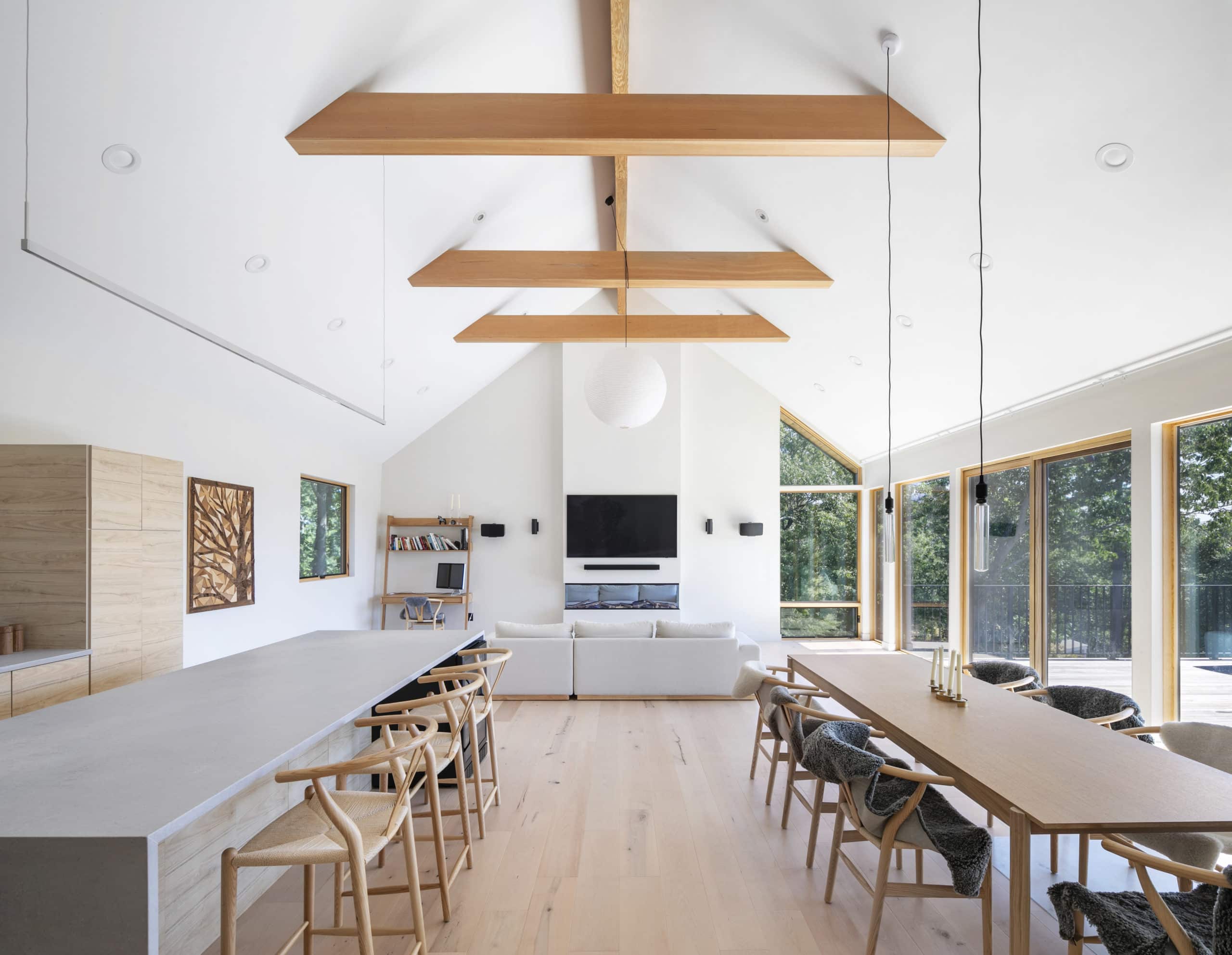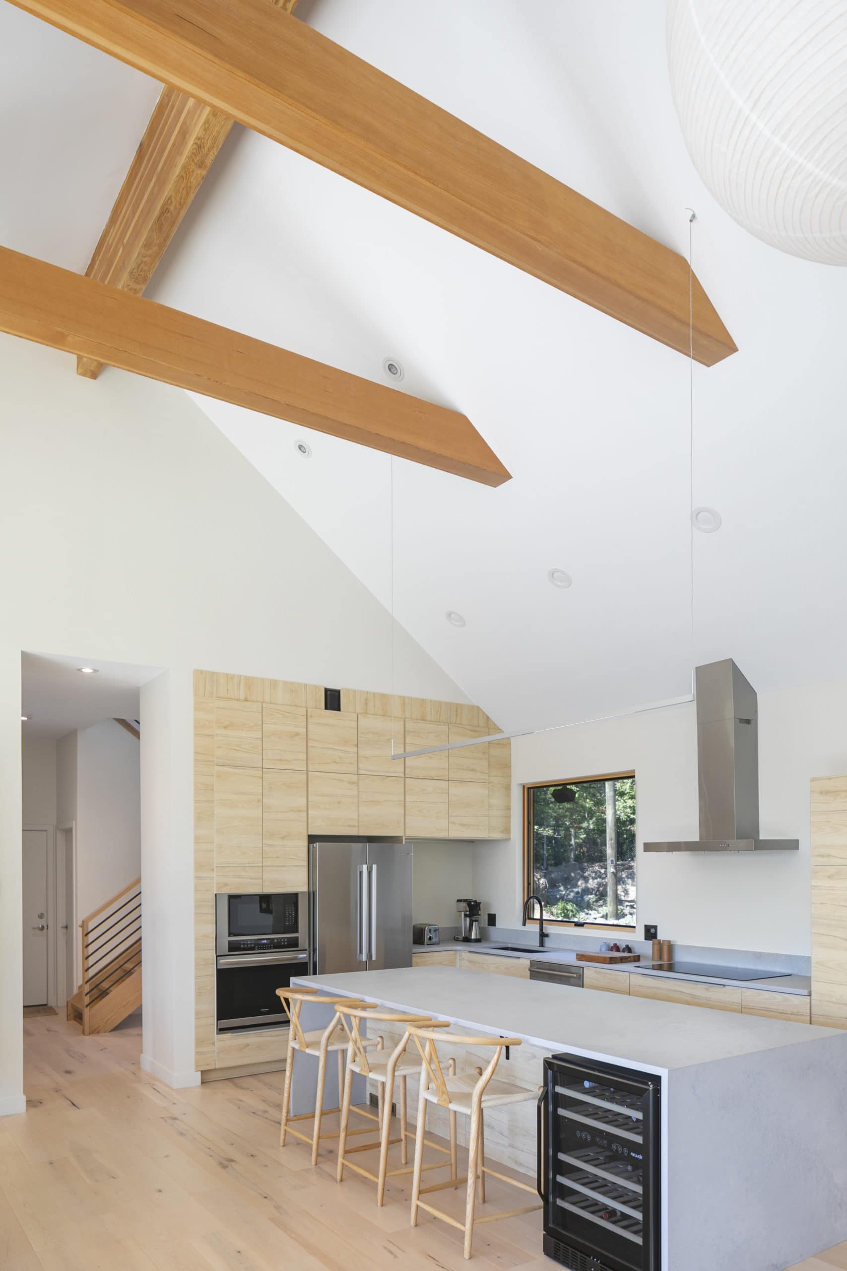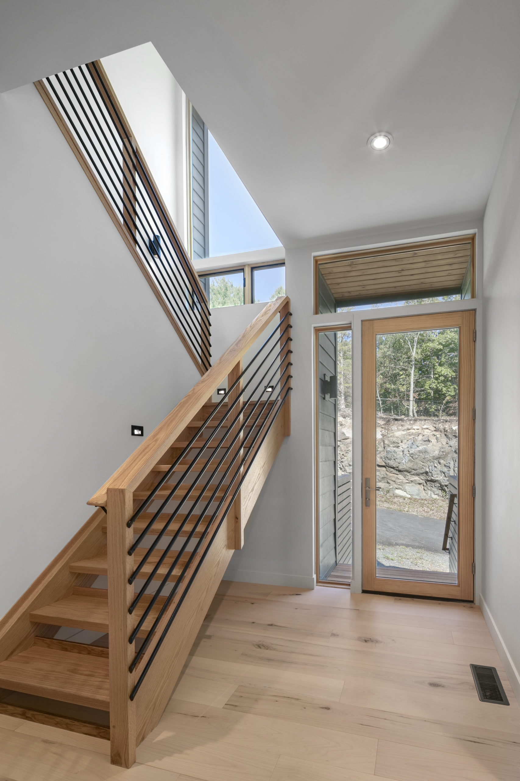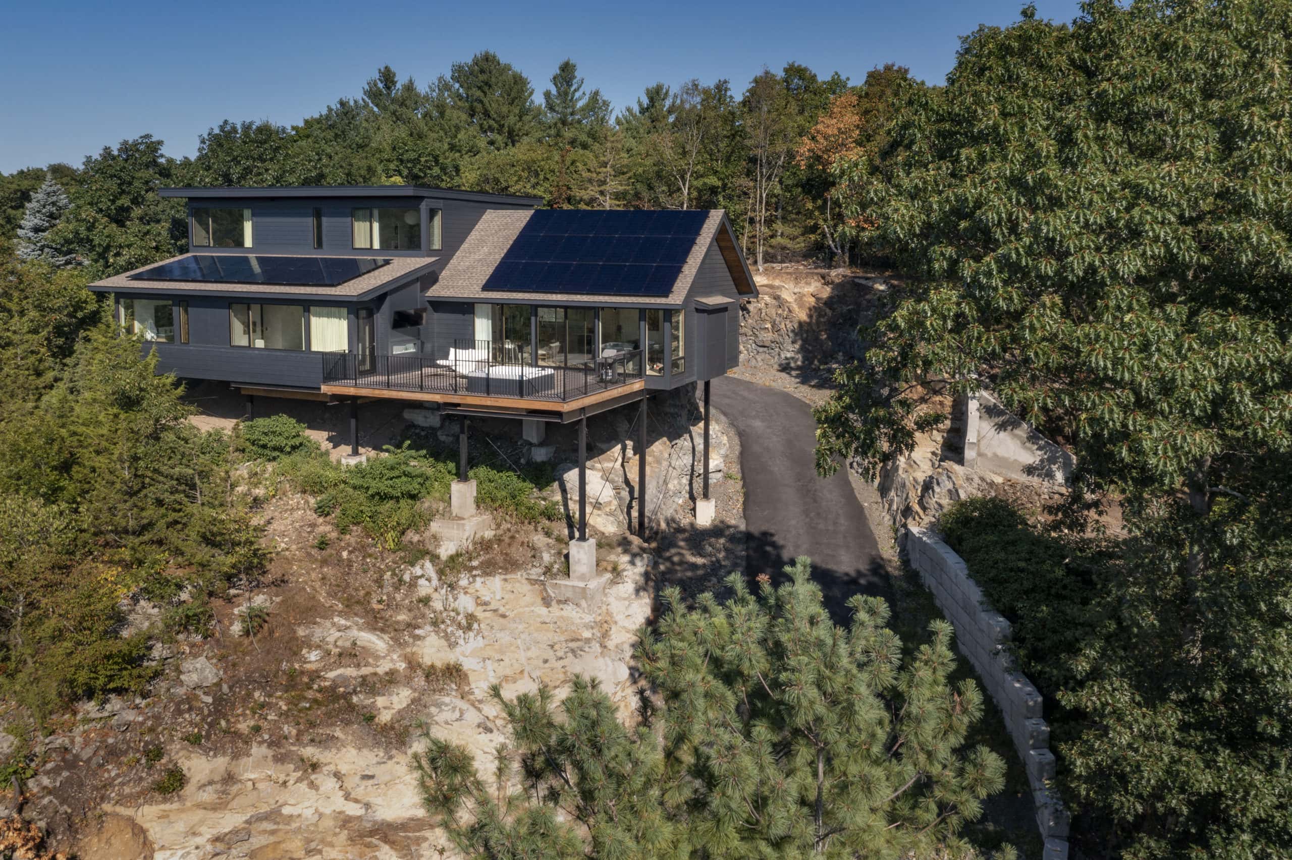 Inspired by a Scandinavian design movement from the early 20th century, this custom home is characterized by simplicity, minimalism, and functionality. Built in a residential area, in what many would have considered an unbuildable lot, this home sits 60 feet above the road, and offers breathtaking seasonal views of the Boston skyline. Designed with the latest in energy efficient technology, this home received a HERS Index Score of -7.