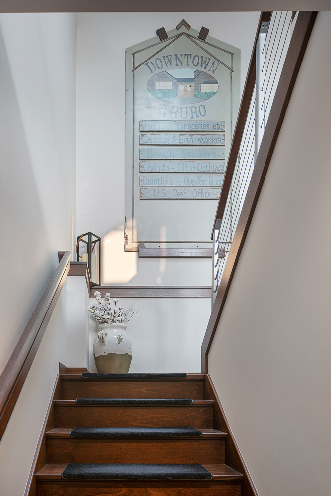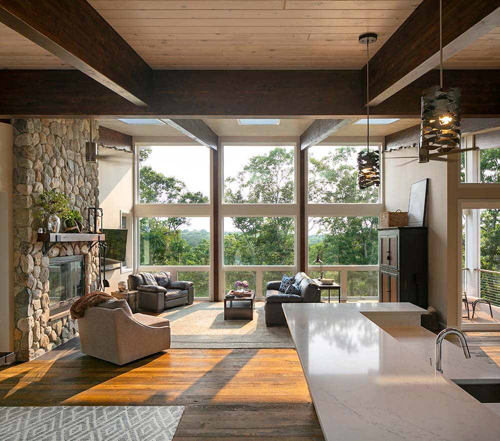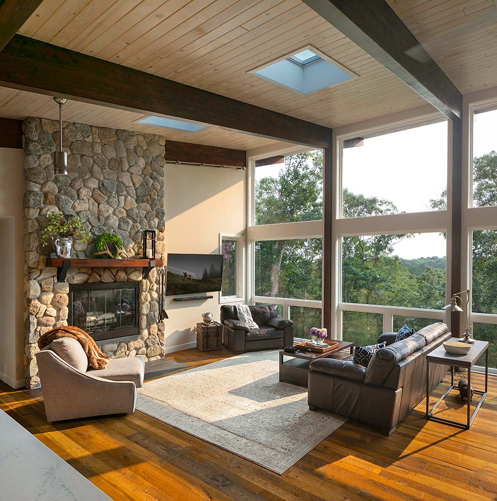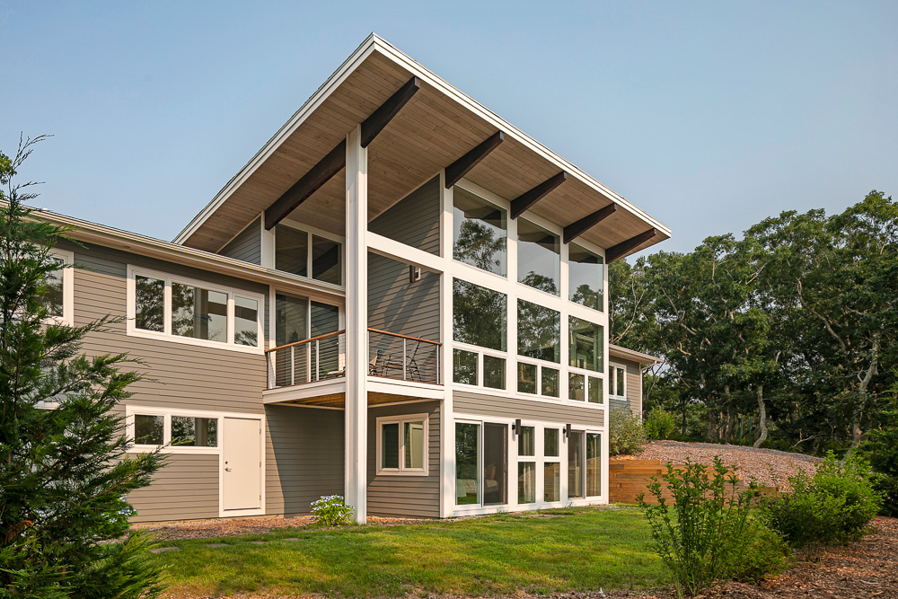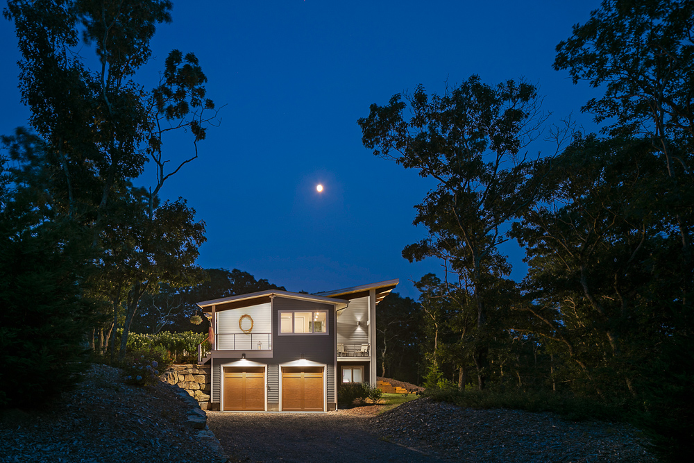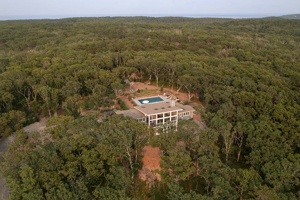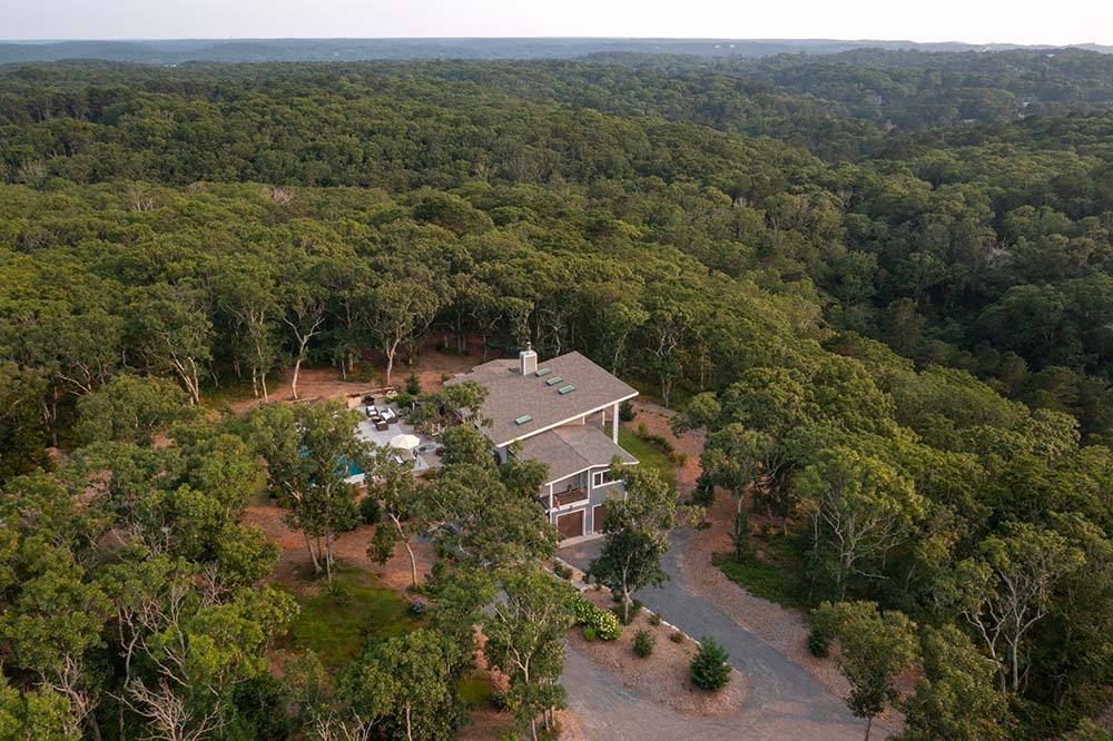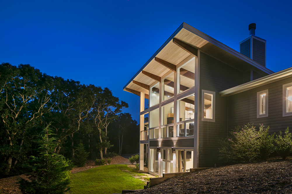 Sited on a parcel of land abutting the Cape Cod National Seashore, this modern farmhouse embraces both its coastal and wooded surroundings. The 2,600-square-foot home, fittingly named Truro Treehouse, sits perched atop a hill overlooking acres of private forest and beautifully landscaped gardens. It features exposed post and beam construction, which not only brings beauty and warmth to the interior but also allows for cathedral ceilings and expansive walls of glass, blurring the line between indoors and out. Read more on our blog here.